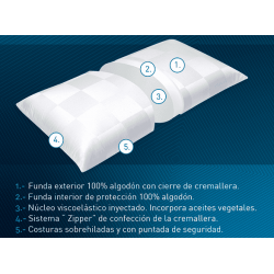 Núcleo 100% poliuretano viscoelástico enriquecido con aceites vegetales. Perforación inteligente.